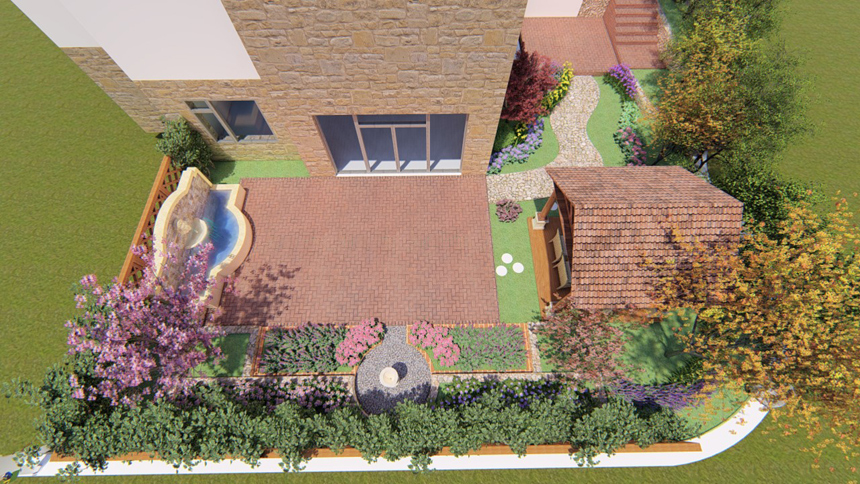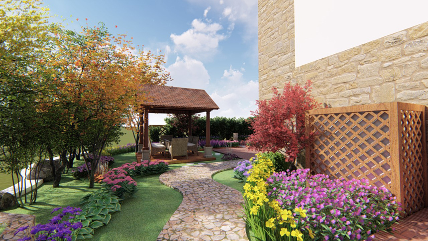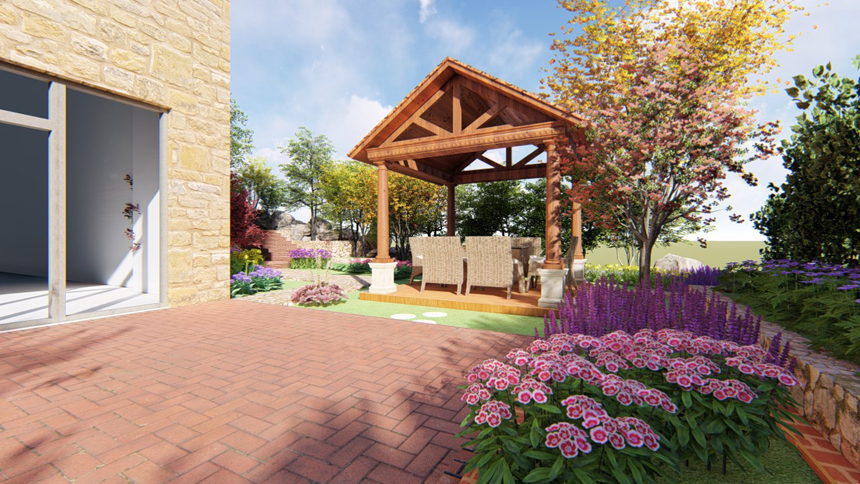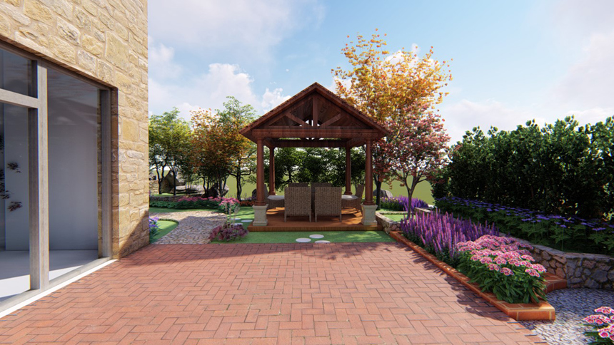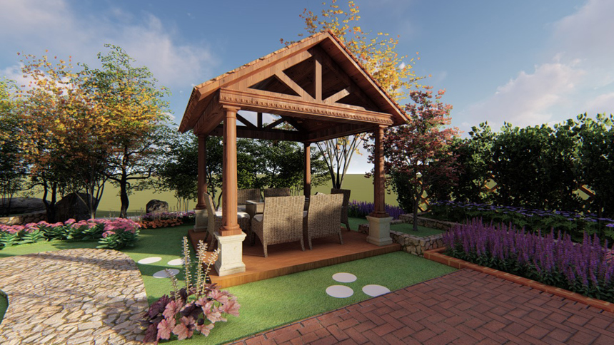 果岭墅私人庭院设计,,,,庭院面积200平米,,,,田园设计手法